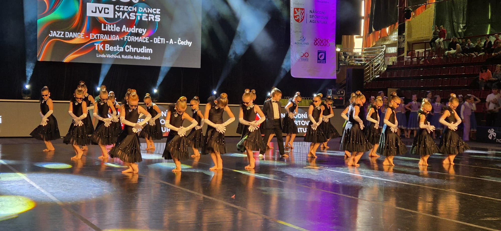 Naši mladší tanečníci s choreografií Little Audrey od Lindy Váchové a Natálie Adámkové předvedli svůj zatím nejlepší výkon a za odměnu se dočkali bronzové medaile. Jsme na Vás moc pyšní – je krásné sledovat progres během sezony.